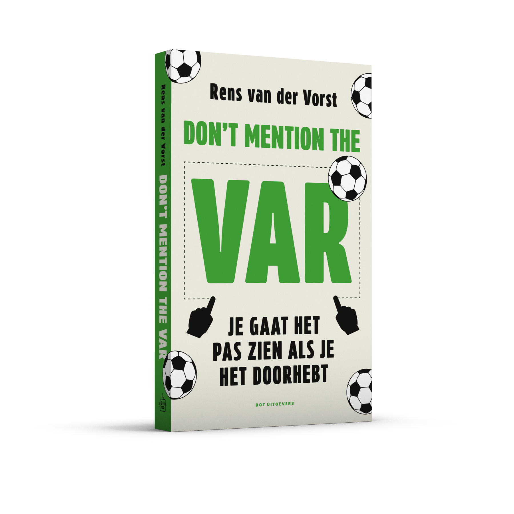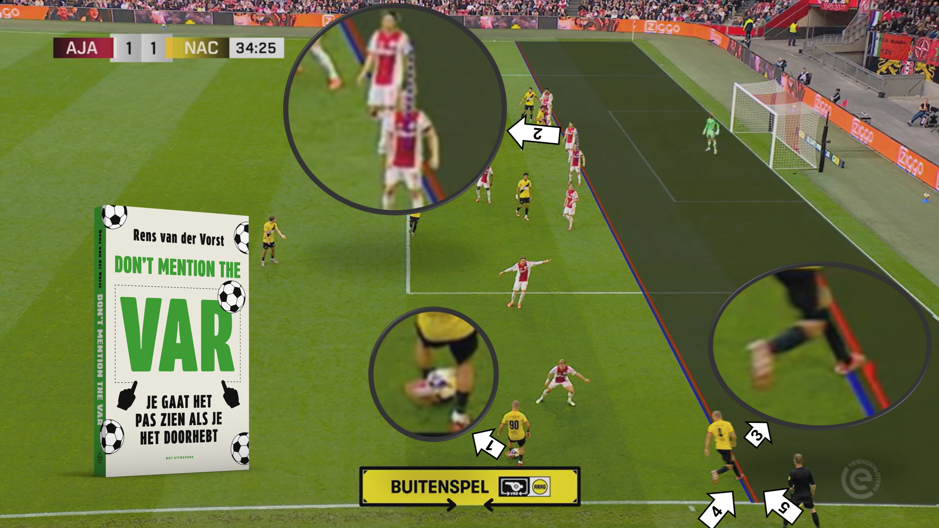 Het boek van NAC-supporter Rens vd Vorst werd afgelopen zomer gepresenteerd tijdens Bier en Ballen en stelt op een ludieke manier twijfels bij de relatie tussen de mens en technologie. Want waarom geloven we animaties met poppetjes die niet eens op spelers lijken als het gaat om wel of geen buitenspel? Waarom roepen ze de scheidsrechter eigenlijk naar het scherm? Moet de VAR écht beter zijn dan de grensrechter of alleen beter dan de scheidsrechter? En hoe moeten we nu eigenlijk juichen in twee etappes?